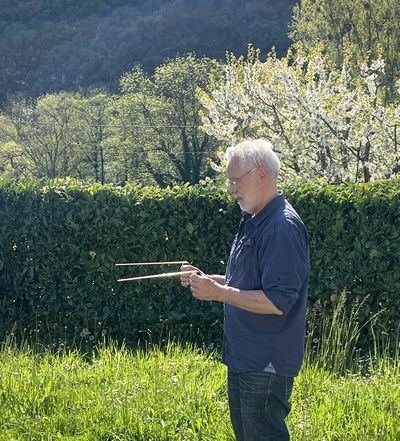 Ensuite, j’explore le terrain et réalise mon ancrage afin de me rendre sensible à toutes les veines d'eau souterraines qui passent sous mes pas.
